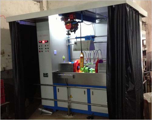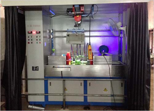 本設(shè)備采用手動、自動兩種運行方式,由可編程控制器(PLC)集中控制。手動時,可進行每個功能的單步獨立操作;自動時,設(shè)備自動執(zhí)行PLC內(nèi)部程序,上料到位后→電極夾緊工件(或穿棒法)→噴灑磁懸液→充磁→松開→觀察等一系列動作。交流磁化均帶斷電相位控制,具有較好的剩磁穩(wěn)定度,既適用于連續(xù)法探傷檢查,又適用于剩磁法探傷檢測。復(fù)合磁化時可在工件表面形成旋轉(zhuǎn)磁場,一次性顯示磁跡,具有較高的工作效率。