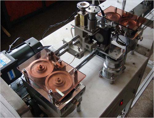 本產(chǎn)品針對極細(xì)的貴金屬棒材而設(shè)計制造。由于被測件比較柔軟,有一定的彈性,加之會有一定的彎曲度,所以在行進過程中會產(chǎn)生一定的抖動,從而影響檢測的結(jié)果,本產(chǎn)品成功克服這一技術(shù)難關(guān),使被測件在行進經(jīng)過探頭的過程中保證局部平穩(wěn)運行,從而保證了檢測的準(zhǔn)確性。