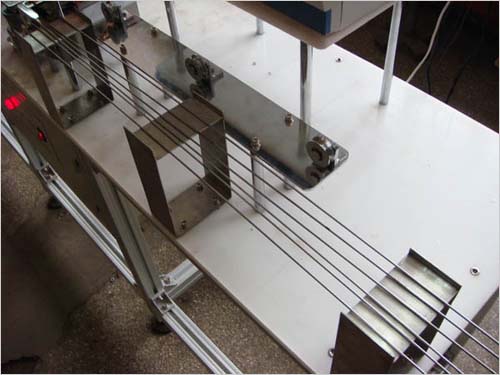 由于被測件比較柔軟,有一定的彈性,加之會有一定的彎曲度,所以在行進過程中會產(chǎn)生一定的抖動,從而影響檢測的結(jié)果,本產(chǎn)品成功克服這一技術(shù)難關(guān),使被測件在行進經(jīng)過探頭的過程中保證局部平穩(wěn)運行,從而保證了檢測的準(zhǔn)確性.