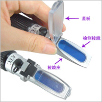 3)掀開蓋板②,用柔軟絨布擦凈棱鏡表面,取1~2滴被測溶液滴于折光棱鏡上,蓋上蓋板②輕輕按壓,讀取明暗分界線的相對刻度,即為被測液體的含量;
