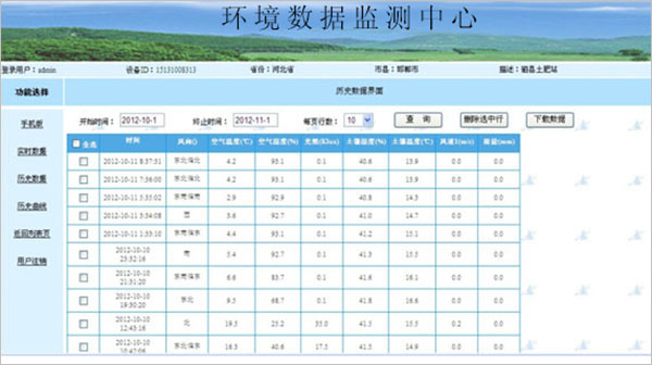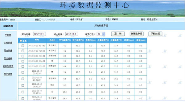 歷史數(shù)據(jù):根據(jù)開(kāi)始時(shí)間和結(jié)束時(shí)間,查詢時(shí)間段內(nèi)的監(jiān)測(cè)數(shù)據(jù)。并且可以刪除數(shù)據(jù)和導(dǎo)出數(shù)據(jù)到本地。