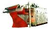 ·在標(biāo)準(zhǔn)型蒸箱中,織物通過(guò)間歇回轉(zhuǎn)的不銹鋼掛布輥輸送運(yùn)行通過(guò)全蒸箱,掛布輥兩端均與蒸箱各側(cè)的一循環(huán)鏈相連并連續(xù)回轉(zhuǎn)通過(guò)蒸箱,在環(huán)形成后往布輥載織物環(huán),以連續(xù)不斷的狀態(tài)運(yùn)行通過(guò)蒸箱。